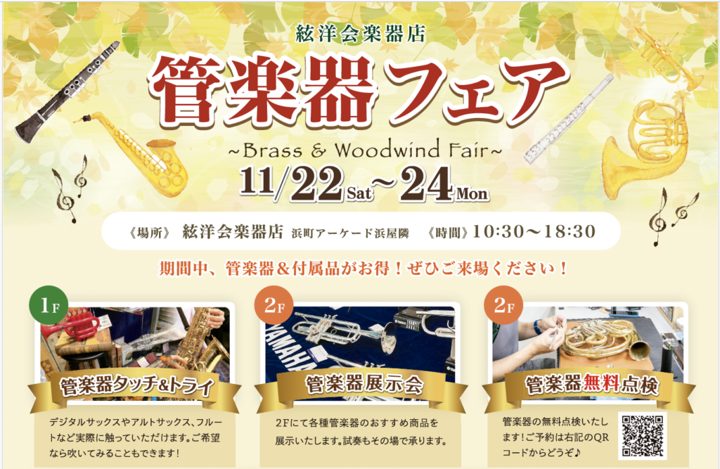 楽器販売・ピアノ調律・買取・管楽器リペアなどを行っています。