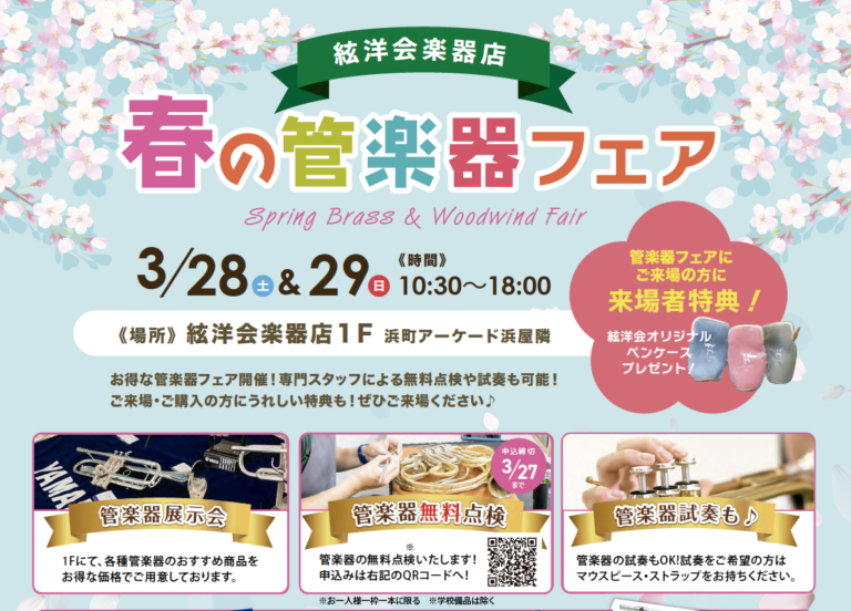 11/22(土)〜24(月)に管楽器フェアを開催します! それに先立ち、フェア前の週末には浜町絃洋会 […] -