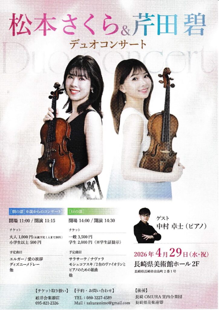 バイオリン&オーボエ ライブ 開催日2026年2月21日(土)場所絃洋会楽器店 店舗入り口時間13: […] -