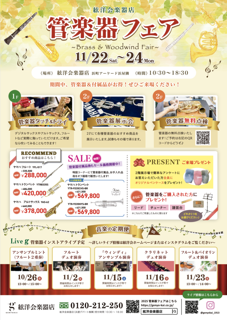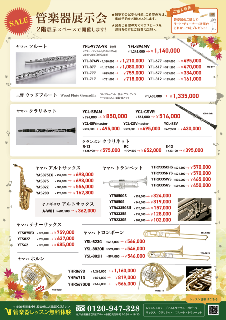 11/22(土)〜24(月)に管楽器フェアを開催します!