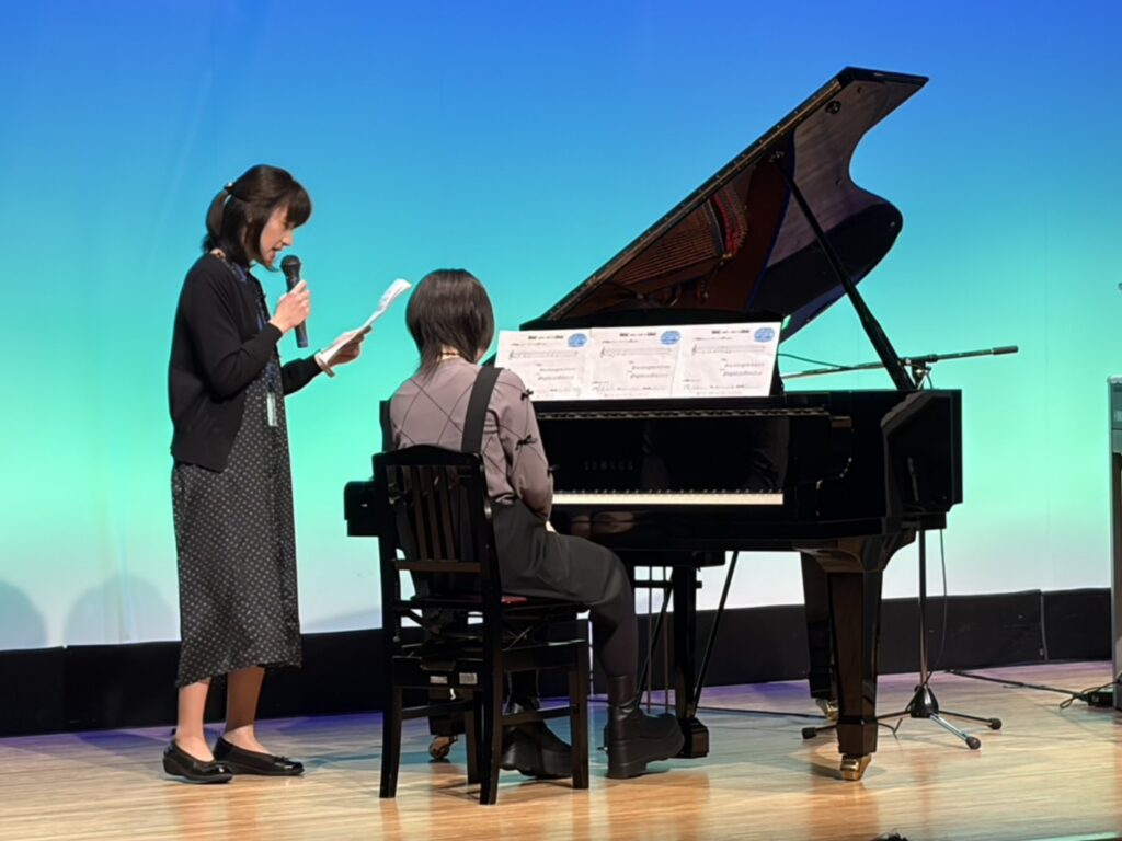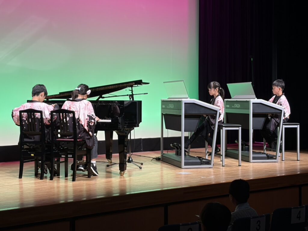 【絃洋会楽器店】の生徒の皆さんにより開催されました。ピアノ、エレクトーンによる素晴らしい演奏が披露されました。2小節程度の短いメロディを基に即座にひとつの作品にする〈即興演奏コーナー〉もあり素晴らしい曲の完成に感動しました!